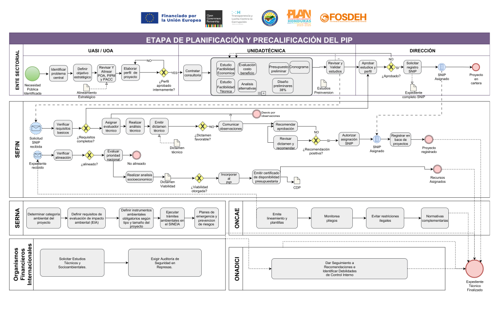 Para ejercer auditoría social con rigor, primero hay que comprender el ciclo de vida del Proyecto de Inversión Pública (PIP). Por ello, el Protocolo se apoya en diagramas que muestran, etapa por etapa, la trazabilidad documental y los puntos críticos donde pueden surgir riesgos, alertas o irregularidades.